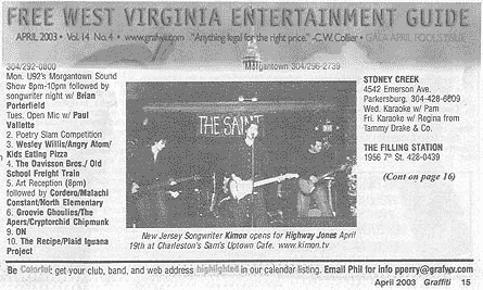 One notable exception is a singer-songwriter out of New Jersey named Kimon (pronounced "kee-mon"). He takes a bitingly forthright analysis of all that's wrong in the world today, wraps it up in lyrics chock-full of nicely turned phrases and clever rhymes, and sets it to bluesy rock 'n' roll, and what do we get? Dissent you can tap your toes to...
